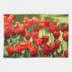Grosses Feld roter Tulpen. Rote Tulpen an einem Sommertag. Das Foto wurde im Mai 2022 aufgenommen. Das Poster ist für die Innenarchitektur geeignet.