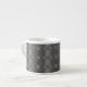 Personalisieren Sie mit Text für ein Geschenk oder sich selbst, gemusterte Espressotasse, mit Grau und Korallen.