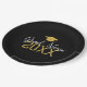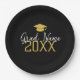 Eine moderne schwarz-goldene Platte mit goldener Graduierung und feinem Text mit einem Thema. Eine großartige Graduiertenparty Dekoration, um den Graduierten zu feiern. Personalisieren Sie Ihre Daten mit einem Namen und Datum.