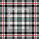 Gewebe in einer großen Skala, retro modernes kariertes in den Schatten des hellen Silbers zum tiefen Holzkohlengrau/grau, schwarz und weiß, betont mit reichem Rot