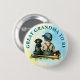 Niedliches Großes Oma zum Knopf für eine blau-gelbe Baseball-Babydusche. Ein Vintager Baby, der neben einem Hund sitzt, ein Black Lab mit Baseballkappe, Fledermaus und Handschuh. Blau und gelb.