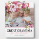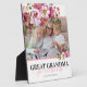 Elegante Urgroßmutterplakette mit klassisch weißem Hintergrund, der in jede Farbe verändert werden kann, hübsch rosa Aquarellblütenschmuck, ein Foto Ihrer Nana, das Sprichwort "Urgroßmutter, die Besten" und die Enkelkinder-Namen.