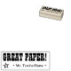 Die Briefmarke aus Gummi-Gummi-Gummi-Optik ist mit der Nachricht "GREAT PAPER!" und einem personalisierten Lehrernamen versehen. Es ist auch mit einer dekorativen Sterne-Kontur gestaltet. Es könnte von einem Lehrer, Erzieher, Ausbilder oder Tutor genutzt werden, um anzuerkennen, dass ein Student eine außergewöhnliche Arbeit geleistet hat.