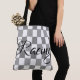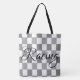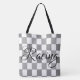 Motorsport entworfen grau-weiß Schachbrettfahrer, die Tasche entworfen, großartig auf die Strecke zu nehmen. Speedway Karo entworfen Print. Der Renntext kann einem Team personalisiert werden, indem Sie Ihre Lieblings-Rennwagen-Nummer hinzufügen.