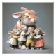 Ein glückliches Kaninchen ist von vier kleinen Kaninchen umgeben, die alle in einer Gruppenumarmung umarmt sind.