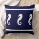 Design von Sandy Closs. Teil der nautischen Dekoration des Ozeans weiß auf der einen Seite und auf der anderen Seite weiß auf der SEA HORSE PILLOW und auf der anderen Seite mariniert. Wassersport-Design perfekt für Küstenwohnungen, Seedekoration, Flussdekoration und mehr...
