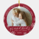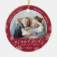 Mit diesem wunderschönen Foto-Ornament aus der Keramik kreieren Sie ein süßes Geschenk für eine geliebte Oma oder einen Großvater. "Großkinder machen das Leben groß" erscheint am unteren Ende mit weißen Schneeflockenakzenten. Personalisieren Sie sich mit dem Jahr darunter, und die Enkelkinder-Namen kurbeln über die Spitze. Fügen Sie der Rückseite ein zweites Foto hinzu.