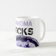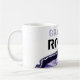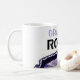 Cooler populärer schwarzer und violetter Text auf einer Artkaffee-Tee-Tasse des weißen Hintergrundes klassischen.