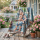 Diese herzliche Illustration fängt einen zärtlichen Moment auf der Veranda zwischen einer Großmutter und ihrer Enkelin ein, gehüllt in Wärme, Trost und stille Freude. Sanfte Lächeln, rosige Wangen und liebevolle Nähe schaffen eine Atmosphäre der Liebe und Geborgenheit, vor dem Hintergrund einer charmanten Cottage-Veranda voller blühender Blumen, pastellfarbener Töne und sonnendurchflutetem Grün. Weiche Wasserfarben-Stilistik und märchenhafte Whimsy verschmelzen schön mit Cottagecore- und Shabby-Chic-Ästhetik und rufen Nostalgie, familiäre Bindungen und die einfache Schönheit alltäglicher Momente hervor. Die Farbpalette tendiert zu beruhigenden Blautönen, rosa Tönen und frischen Frühlingsgrüntönen und schafft eine friedliche, tröstende visuelle Geschichte voller Süße und Anmut. KI-gener