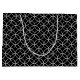 Diese große Geschenktasche aus Papier wird in einem schwarz-weißen Kreismuster dargestellt. Passen Sie diese Tasche an oder kaufen Sie, wie es ist.