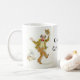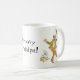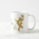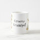 Eine Tasse des weißen Kaffees mit einer schwarzen Kante und einem Griff, verziert mit einem älteren Mann, tanzend zur Musik von einem alten Grammophon, von einer Wasserfarbemalerei von Judy Adamson. Der Text, in der schwarzen Beschriftung, die Sie ändern können, ist "starker Großvater!". Dieser Entwurf ist auch auf Grußkarten und -Kühlschrankmagneten verfügbar.