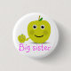 Een leuke button voor een (nieuwe) grote zus. Ook leuk om als cadeau te geven. Op het shirt staan 2 groene appels afgebeeld met een roze tekst: Big sister