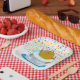 Funny Groundhog Day Cartoon mit einem Erdschwanz, der aus einem Geburtstagskuchen springt.