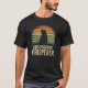 Eine Silhouette eines Erdhakens mit bunten, kreisförmigen Streifen und Vintagem Text "GROUNDHOG WHISPERER" auf schwarzem Hintergrund.