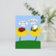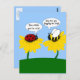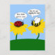 Auf dieser niedlichen Postkarte sitzt eine verärgerte Hummel auf einer gelben Blume und frage: "Warum nervst du mich, Lady?" auf die der geschlagen Ladybug, der auf einer anderen Blume sitzt, antwortet: "Bee-Weil du niedlich bist". Aus meinem digital erstellten Originalbild.