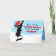 Eine Grusskarte mit MuffinPuffARTS! Neueste Zeichentrickfigur Elliot, eine ziemlich gruselige schwarze Katze. Er trägt eine fröhlich aussehende Weihnachtsjubiläum-Weihnachtsmannmütze, und mit gefalteten Armen und glänzenden Augen sagt er: "Gut, ich mache Weihnachten, aber ich mache kein Vergnügen!" auf einem blauen, schneefleckigen Hintergrund. Sie können den gesamten Text an Ihre Bedürfnisse anpassen. Illustrationen von Jojo Kneebone - Aka MuffinPuffART!