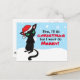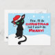 Eine Grusskarte mit MuffinPuffARTS! Neueste Zeichentrickfigur Elliot, eine ziemlich gruselige schwarze Katze. Er trägt eine fröhlich aussehende Weihnachtsjubiläum-Weihnachtsmannmütze, und mit gefalteten Armen und glänzenden Augen sagt er: "Gut, ich mache Weihnachten, aber ich mache kein Vergnügen!" auf einem blauen, schneefleckigen Hintergrund. Illustrationen von Jojo Kneebone - Aka MuffinPuffART!