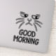 Dieser Aufkleber zeigt eine schwarz-weiße Abbildung einer gruselig aussehenden Katze mit dem Text "GUTES MORNING". Es ist ein lustiger und verlässlicher Weg, Ihre Gefühle über den Morgen auszudrücken.