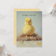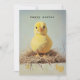 Ein flauschiger, gelber Küken mit einem bezaubernd mürrisch aussehenden Ausdruck sitzt in einem rustikalen Nest. Das Kunstwerk im Vintagen 50er-Stil verbindet Realismus und Charme und schafft eine skurrile, aber klassische Ästhetik.