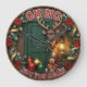 This humorous, rustic clock features a grumpy reindeer wearing glasses and a bell collar, standing in front of a green wooden door. The clock face is framed by a garland of pine, poinsettias, and ribbon, and includes holiday ornaments and a plush reindeer toy. The phrases "OH NO" and "NOT YOU AGAIN" add a funny, sarcastic touch to this cozy, vintage-style Christmas decor.