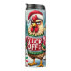 Diese komische Abbildung zeigt einen gruseligen Hahn mit einer Weihnachtsmannmütze und einem Urlaubspullover, der auf "CLUCK OFF" steht. Der Hahn steht in einer schneebedeckten Szene neben einem Schild, das lautet: "GEWECKT UP FESTIVE. UNMITTELBAR BEDAUERT!" Die Grafik erfasst einen humorvollen und relativierenden Blick auf die Feriensaison.