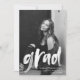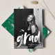Moderner Abschluss Dankeschön-Karte mit dem Foto des Absolventen mit "grad" in einem weißen Pinsel Skript-Overlay. Personalisieren Sie die Vorderseite des Abschlusses danke Ihnen Karte, indem Sie den Namen, Schule, Name und Abschluss Jahr des Absolventen. Auf der Rückseite der Karte ist Platz für Ihre getippte oder handgeschriebene Nachricht mit einem Hintergrund von grün gestrichenen Pinselstrichen.