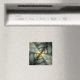 Magnet mit "Schütteln", von Susan Wallace. Copyright © 2010, Susan Wallace. In diesem dramatischen, aber spielerisch abstrakten Design explodieren eine Reihe von grünen ovalen Formen, die von einem orangefarbenen und gelben Berst abgelöst werden.