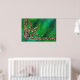 Ein abstraktes Werk in hellgrün und kupfer. Ein klares grünes Schmuckstück ist umgeben von Kupferblättern aus Gras mit glitzernden Smaragden und orangefarbenen Sternexplosionen. Die schwellenden, kurvenreichen Fraktale im Hintergrund erscheinen in tiefgrüner, braun und orange im Kupferfiligrane des Blattmotivs.