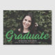 Einfache und stilvolle Ankündigungsmagnet mit dem waagerechten Foto des Absolventen mit "Graduate" in einer fett grünen Schrift. Personalisieren Sie die Ankündigung des Foto-Abschlusses, indem Sie den Namen des Absolventen, den Schulnamen und das Abschluss Jahr.