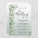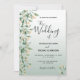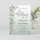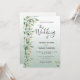 Im Vordergrund: Botanisches Thema. Farbverlauf grün, Hintergrund ombre. Grün, Grün und Blattwerk mit kleinen goldenen Blume. Moderne große handgeschriebene Schrift, Typografie mit dem Text: Die Hochzeit von. Vorlagen für Ihre Namen und Hochzeitsdetails. Schwarzer Text. Zurück: grün gestufter Hintergrund.