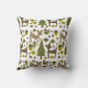 Ein Kissen, das ein Waldthemed Muster mit Illustrationen der Rotwildrotwild, der Eicheln, der Blumen, der immergrünen Bäume und des Blätter kennzeichnet.
