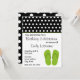 Ein Geburtstags-Party laden eine schwarze Grenze mit weißen Polkapunkten oben kennzeichnen mit grüner Ordnung ein. Illustration eines Paares Grüns drehen Reinfälle unten nach rechts um. Personifizieren Sie den schwarzen Text mit Details Ihrer Gelegenheit. Gegenüberliegende Seite ist mit weißen Punkten schwarz. Look for zusammenpassendes Porto und Adressen-Etiketten bei Jill Paperie.