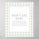 Grün Gingham Baby Dusche Sage kein Baby-Zeichen Poster