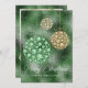 Elegante grüne glänzende Imitate Kristall-Ziergegenstände mit einem traditionellen Gefühl von Fröhlichen Weihnachten von unserer Zuhause bis zu Ihrer Typografie. Fügen Sie auf der Rückseite dieser Karte ein beliebtes Foto zur Anpassung hinzu. Akzente Glitzer-Ornamente tragen zur Schönheit dieses Designs auf der Rückseite dieser Karte bei.