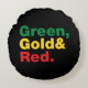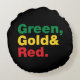 Grün, Gold und Rot. Rundes Kissen