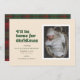 Diese Weihnachtsschwangerschaftsankündigung enthält die Worte "Ich werde zu Weihnachten Zuhause", geschrieben in einem grünen Retro-Schriftart. Es hat Platz für ein Single-Portrait groß Foto, sowie den Namen und die Geburtsdaten Ihres Neugeborenen. Der Rücken hat ein festliches kariertes rotes und grünes Muster.