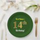 Grün, Imitate Gold 14. Geburtstag + Individuelle N Pappteller
