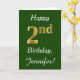 Grün, Imitate Gold 2. Geburtstag + Individuelle Na Karte
