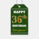 Dieses Geschenk-Tag Design enthält eine Nachricht wie "HAPPY 36. BIRTHDAY, Georgiana!", wo der Name angepasst werden kann und wo die Zahl "36." ein Imitat/Imitation goldfarbigen Aussehen hat. Die Vorderseite hat auch einen grünen Hintergrund. Auf der Rückseite befindet sich eine "From:"-Zeile. Geburtstagsgeschenke wie diese könnten vielleicht für Geschenke verwendet werden, die jemand zum sechsunddreißigsten Geburtstag bekommt. [~Z0000210]