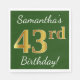 Dieses einfache Papier-Serviette-Design enthält eine Nachricht wie "Samanthas 43. Geburtstag!", mit dem "43.", das ein Imitat goldähnlich auf einem grünen Hintergrund hat. Der Name kann angepasst werden. Es könnte auf einer Geburtstagsparty für jemanden verwendet werden, der seinen dreiundvierzigsten Geburtstag feiert. [~Z0000081]