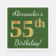 Dieses einfache Papier-Serviette-Design enthält eine Nachricht wie "Alexander’s 55. Birthday!", mit dem "55.", das ein goldenes Imitat auf einem grünen Hintergrund hat. Der Name kann angepasst werden. Es könnte auf einer Geburtstagsfeier für jemanden verwendet werden, der seinen 50. Geburtstag feiert. [~Z0000081]