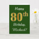 Grün, Imitate Gold 80. Geburtstag + Individuelle N Karte