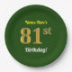 Grün, Imitate Gold 81. Geburtstag + Individuelle N Pappteller