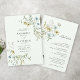 Dieses elegante All In One Hochzeitsangebot mit handgemalten Aquarellfarben-Wildblumen in Buttergelb, Salbeigrün, staubgrünem und hellblau mit QR-Code und Hochzeitsdetails auf der Rückseite, perfekt für Frühling, Sommer oder Hochzeiten im Herbst. Für eine weiter gehende Anpassung dieses Designs klicken Sie bitte auf den BUTTON BLAU DESIGN TOOL oben! Matching-Elemente sind ebenfalls verfügbar.
