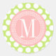 Grün & leicht rosa Big Polka Dots Mit Monogramm Runder Aufkleber