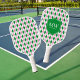 Bringen Sie Persönlichkeit und Vintage-Charme auf den Platz mit unserem grünen und rosa Argyle-Pickleball-Schläger, einer perfekten Mischung aus klassischem Muster und spielerischem Retro-Stil. Entwickelt, um herauszustechen, verfügt dieser Schläger über einen lebendigen Argyle-Druck in energiegelbem Pickleball-Grün und knalligem Rosa, was ihm den unverwechselbaren Pepp verleiht, den Spieler lieben. In der Mitte befindet sich ein maßgeschneidertes Monogramm auf einem eleganten stilisierten Wappen, das dem spaßigen Retro-Design einen Hauch von persönlicher Raffinesse verleiht. Ob Sie am Netz dominieren oder einfach nur zu einem geselligen Match herauskommen, mit diesem Schläger können Sie Ihren einzigartigen Stil jedes Mal ausdrücken, wenn Sie auf den Platz treten. Perfekt zum Verschenken oder zum Verwöhnen - hier trifft Preppy