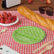 Grün, Dots & Kleeblatts Design. Weich grüner Hintergrund mit Polka-Punkten und einem Band aus Kleeblättern. Ideal für die Zeit um St Patrick's Day ...oder jedes Mal, wenn Sie gewollt haben, solche Motive zu haben. Passen Sie Ihre Wünsche an (auch den gesamten Text löschen).