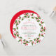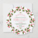 Einfache, elegante Weihnachtskranz-Illustration mit grünen Evergreens und Weihnachtsroten Beeren. Weißer Kreis in der Mitte für individualisierbare Text Weihnachten Dinner Party Einladung.