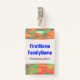 Dieses AbzeichenAusrüstungsbeschreibungen ein abstraktes splotchy bewölktes Muster, das gesagt werden könnte, um dem Auftritt einiger Watercolormalereien zu ähneln. Es kennzeichnet verschiedene Schatten von Farben wie Grün, Rot und Orange. Es kennzeichnet auch einen kundengebundenen Namen in Blau farbigem Text innerhalb eines hellfarbigen Bereichs. Es gibt auch eine kundenspezifische Mitteilung unter dem Namen dieses könnte Informationen wie ein Jobrollenname zeigen oder ein Beruf oder ein Geschäft/ein Firmennamen. [~Z0000176]