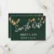 Diese moderne, lässige Karte zeichnet sich durch ein dunkelgrünes, rustikales, hölzernes Hintergrundbild aus, das mit warmen, Vintagen Edison-Leuchten überragt ist. Ich habe einen modernen handgeschriebenen Schriftart benutzt, um eine Grafik darzustellen, die die Worte "Save the Date" darstellt. Der gleiche Schriftart wurde benutzt, um das Wort "Liebe" auf die Rückseite zu setzen. Ihr eigener Text kann leicht hinzugefügt werden, um dieses Design so wenig oder so viel wie Sie möchten anzupassen. Verwenden Sie die Vorlagenfelder, um einfach Ihre persönlichen Daten einzugeben. Wenn Sie zusätzliche Änderungen wünschen, klicken Sie einfach auf, um sich weiter anzupassen, und Sie können jede Ebene, die separat hinzugefügt und für die beste Kontrolle entriegelt wurde, neu positionieren. Bitte zögern Sie nicht, mich für besondere Anfragen oder für Hilfe bei der Anpassung zu kontaktieren. // 106 //